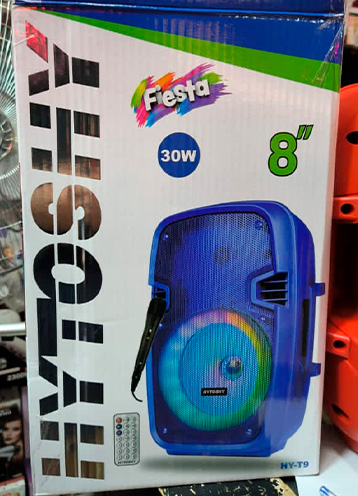 Parlante Bluetooth portátil HYTOSHY Fiesta HY-T9 con potencia de 30W y woofer de 8”, ideal para animar reuniones, fiestas y eventos con un sonido potente y claro.