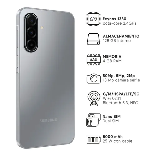 El Samsung Galaxy A17 combina rendimiento fluido, gran capacidad de almacenamiento y un diseño moderno. Ideal para el uso diario, redes sociales, fotos y entretenimiento sin interrupciones.